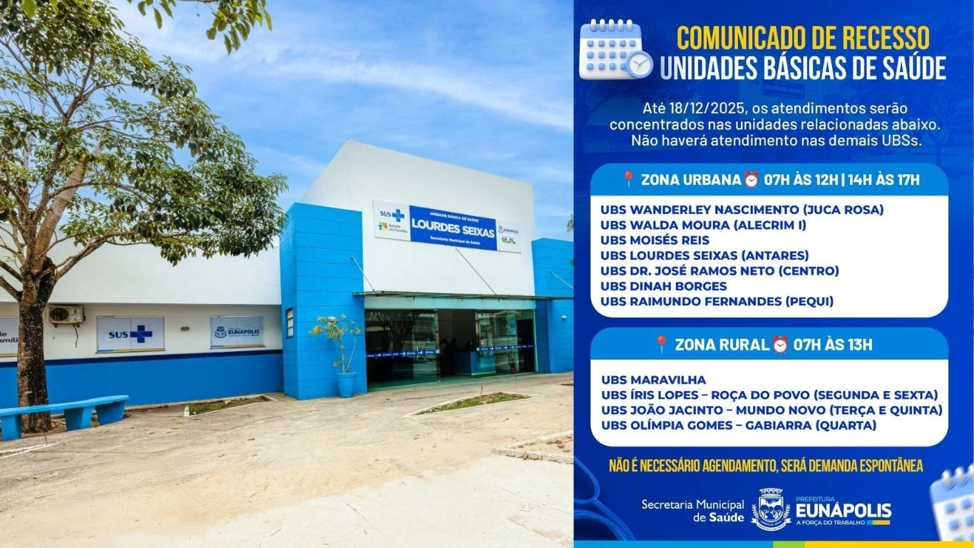 Saúde divulga cronograma das UBS e informa recesso dos serviços de Saúde Mental em Eunápolis